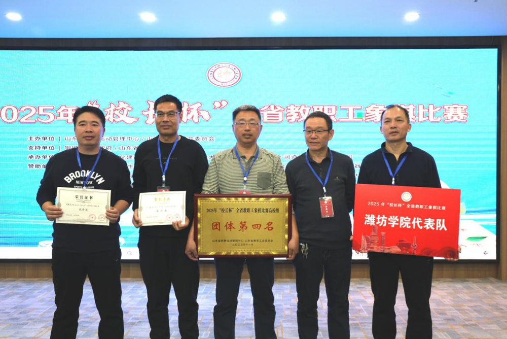 本网讯 11月21日至23日,由山东省棋牌运动管理中心与山东省教育工会委员会联合主办的2025年“校长杯”全省教职工象棋比赛在济南市钢城区举行。学校代表队发挥出色,获团体第四名。